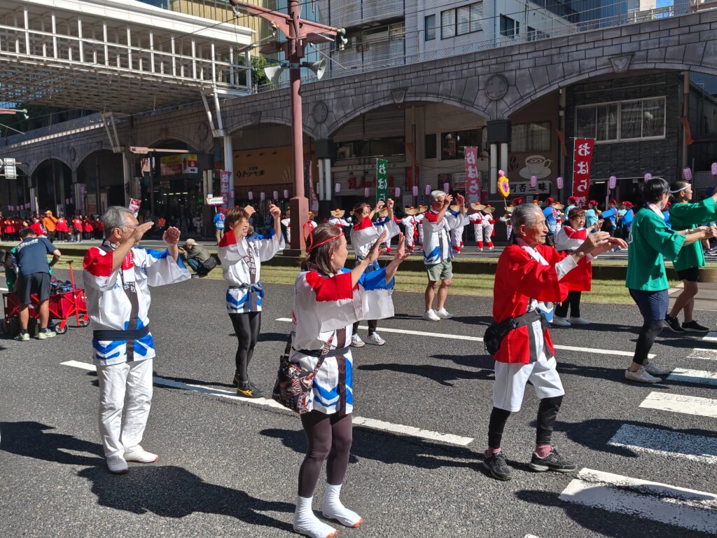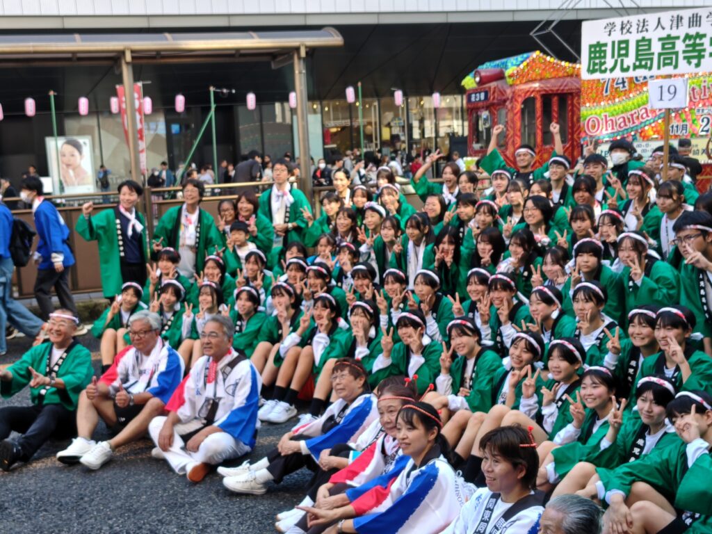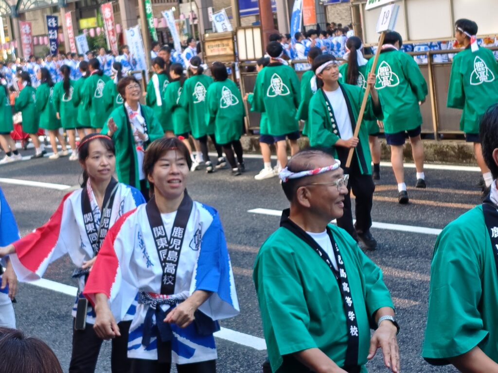 第74回 おはら祭り参加 更新日:2025.11.04 令和7年11月3日、快晴でさわやかな空のもと、第74回おはら祭りが開催され、鹿児島高等学校踊り連に同窓会として参加しました。淵村同窓会会長をはじめ関東・関西同窓会の参加もいただき、鹿高バージョンのハンヤ節では笑顔あふれる賑やかな踊りと、生徒たちの「よいやさ♪、よいやさ♫」の元気な声に沿道からも沢山の声援がかけられました。鹿児島高等学校同窓会では、今後も学校への支援・連携を行い、同窓会と学校発展に寄与してまいります。 ≪前へ 一覧